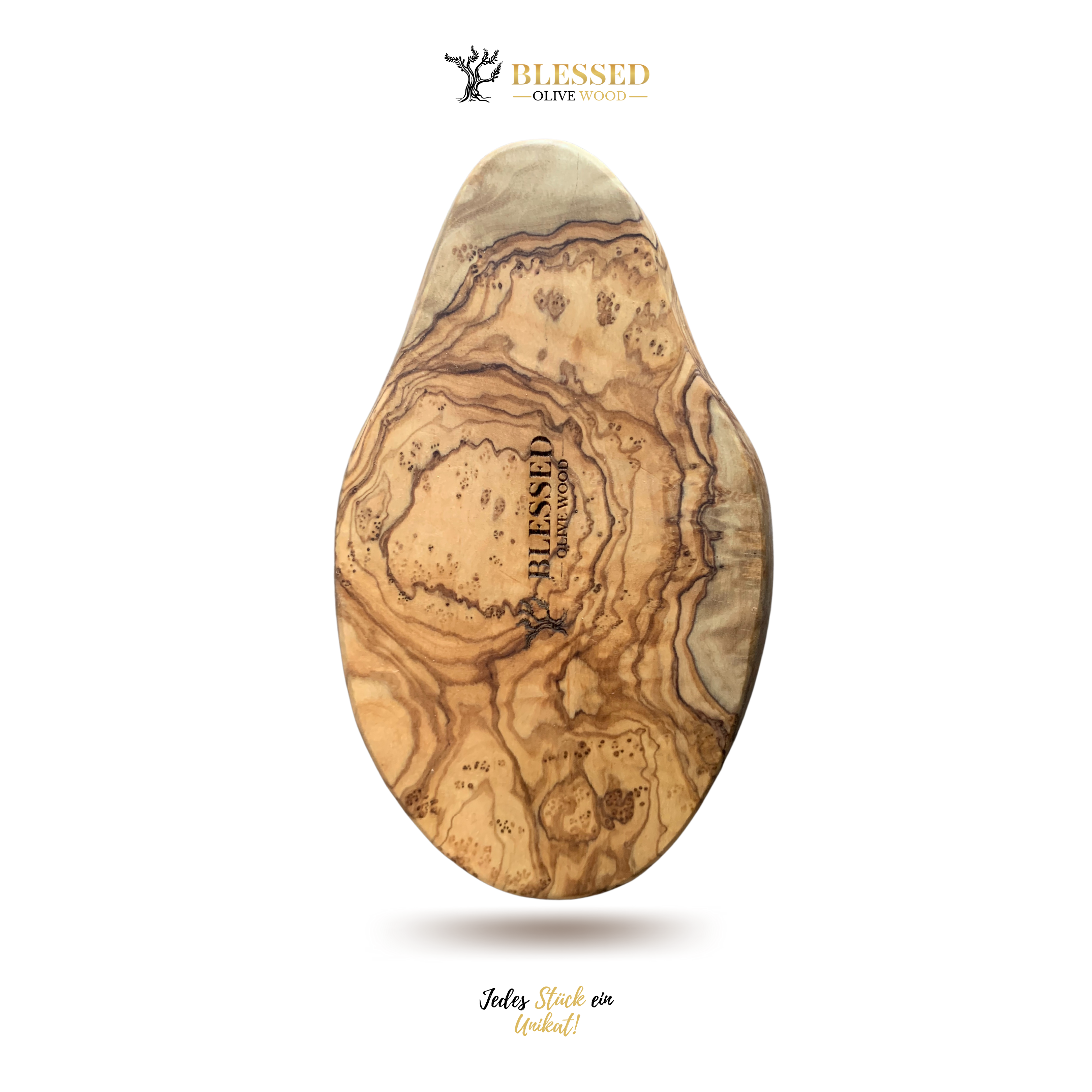 Da es sich um keine Massenproduktion handelt, kann sich das Produkt – durch uneinheitlich wachsendes Olivenholz – nicht nur in der Form/Maße unterscheiden, sondern auch in der Maserung und der Farbe, welches jedes Produkt zu einem Unikat macht (kleine Abweichungen vom Artikelbild sind somit möglich).
