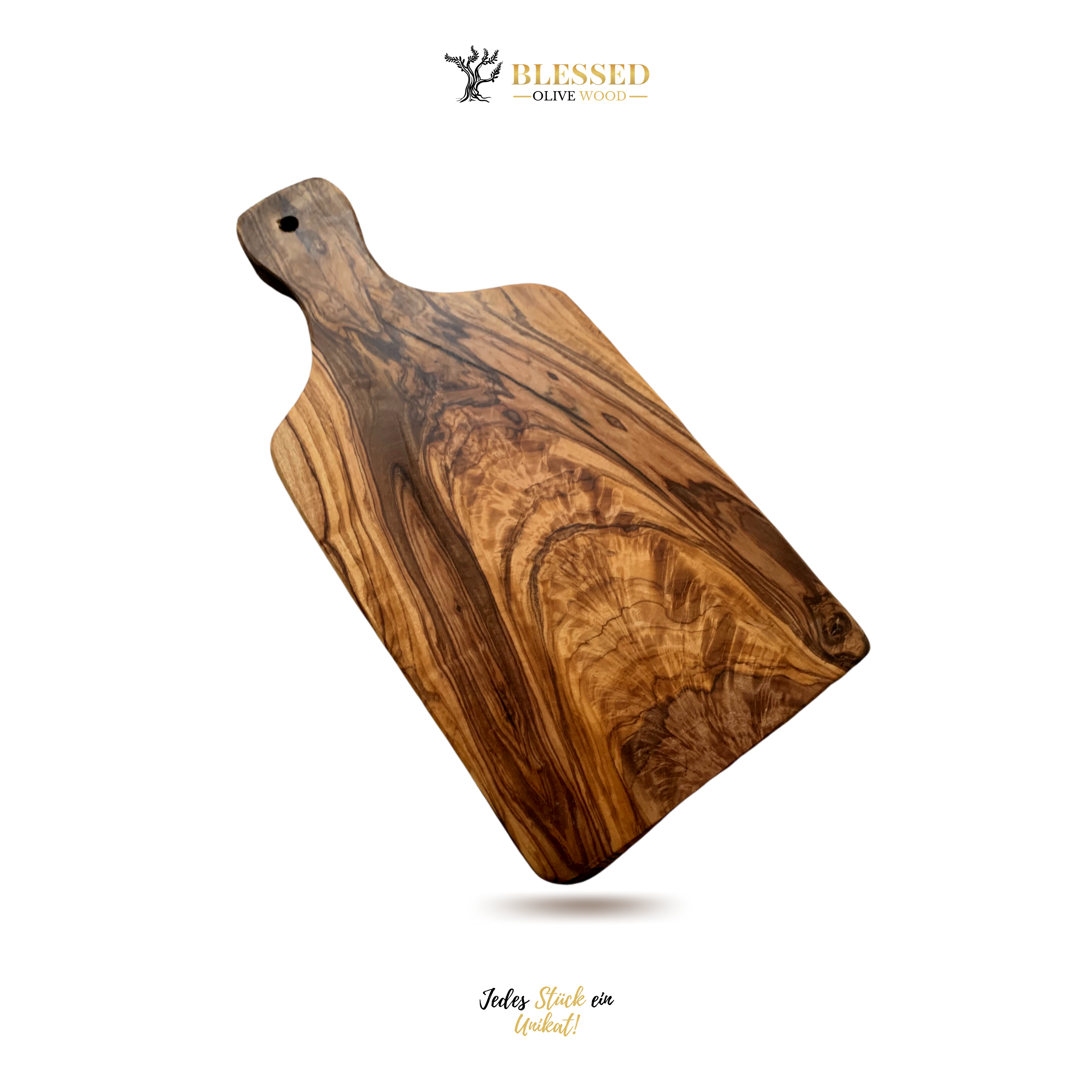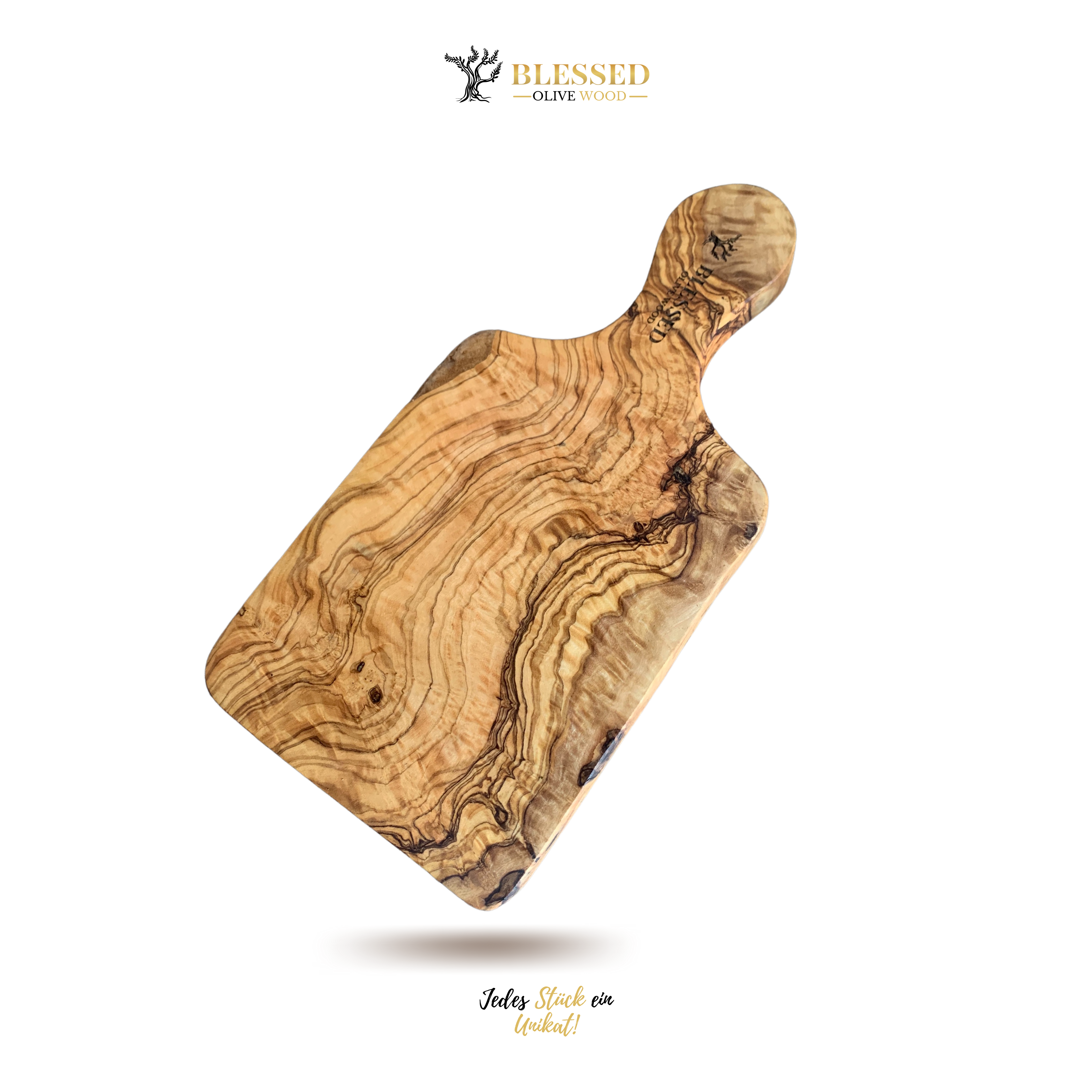 Blessed Olive Wood massiv Olivenholz Schneidebrett Rustikal mit Griff