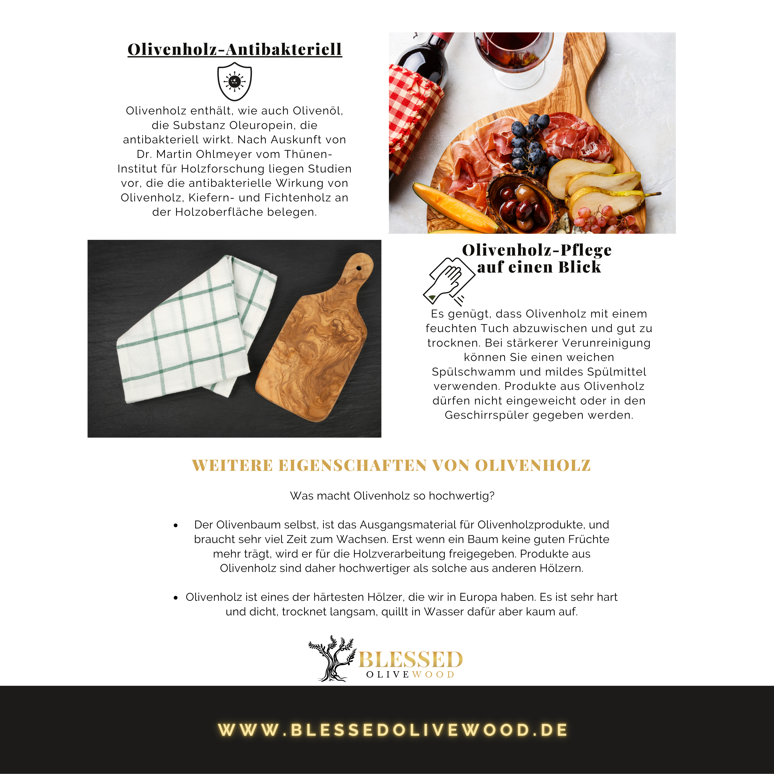 ANTIBAKTERIELL & ANTISEPTISCH: Olivenholz wirkt schlechten Gerüchen und der Bildung von Bakterien entgegen, es ist resistent gegen Verfärbungen und kratzfest