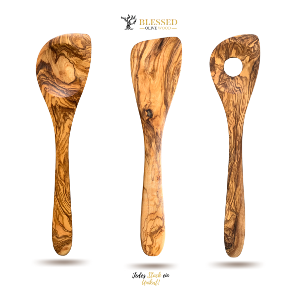 Diese Punkte zeichnen unser dreiteiliges Küchenhelfer-Set aus edlem Olivenholz aus: